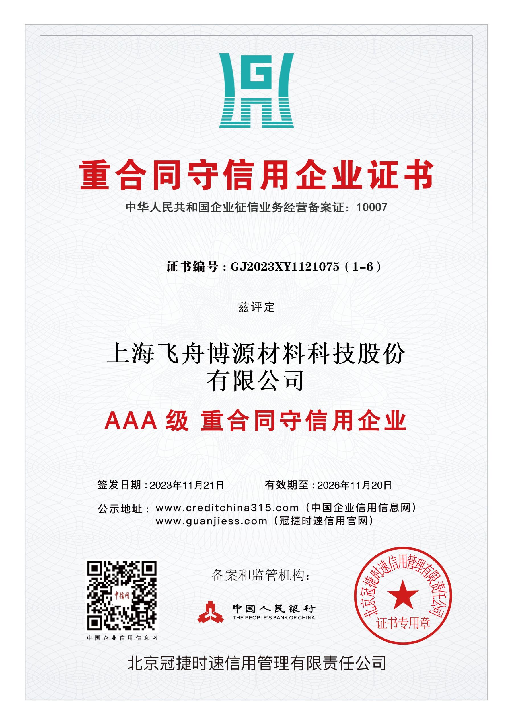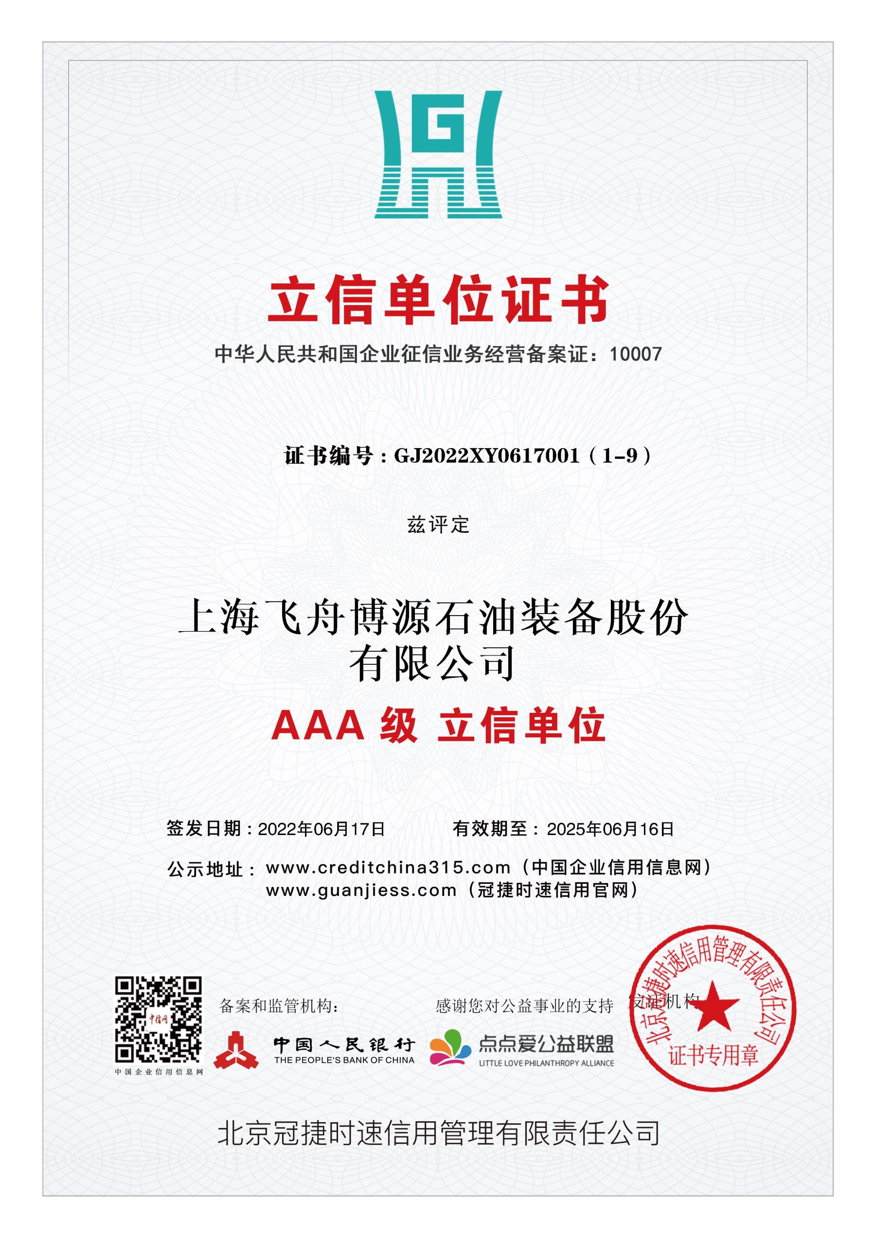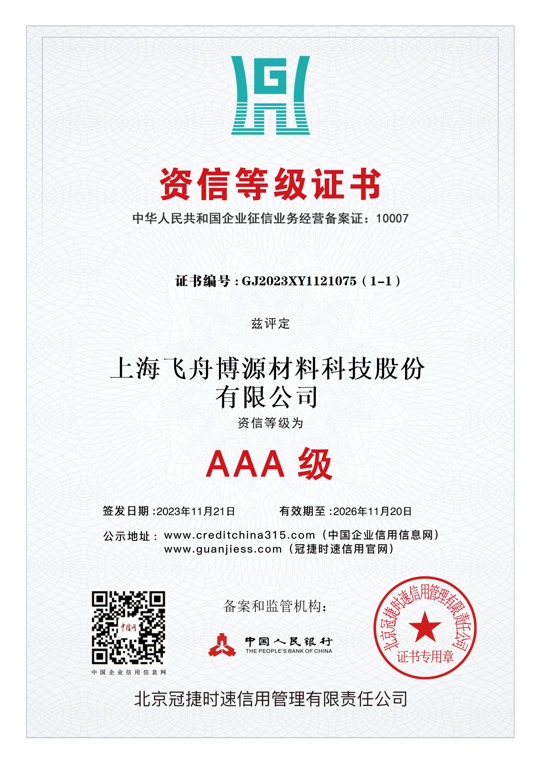 最高级别的企业信用评级,证明公司具有优秀的商业信誉和履约能力。