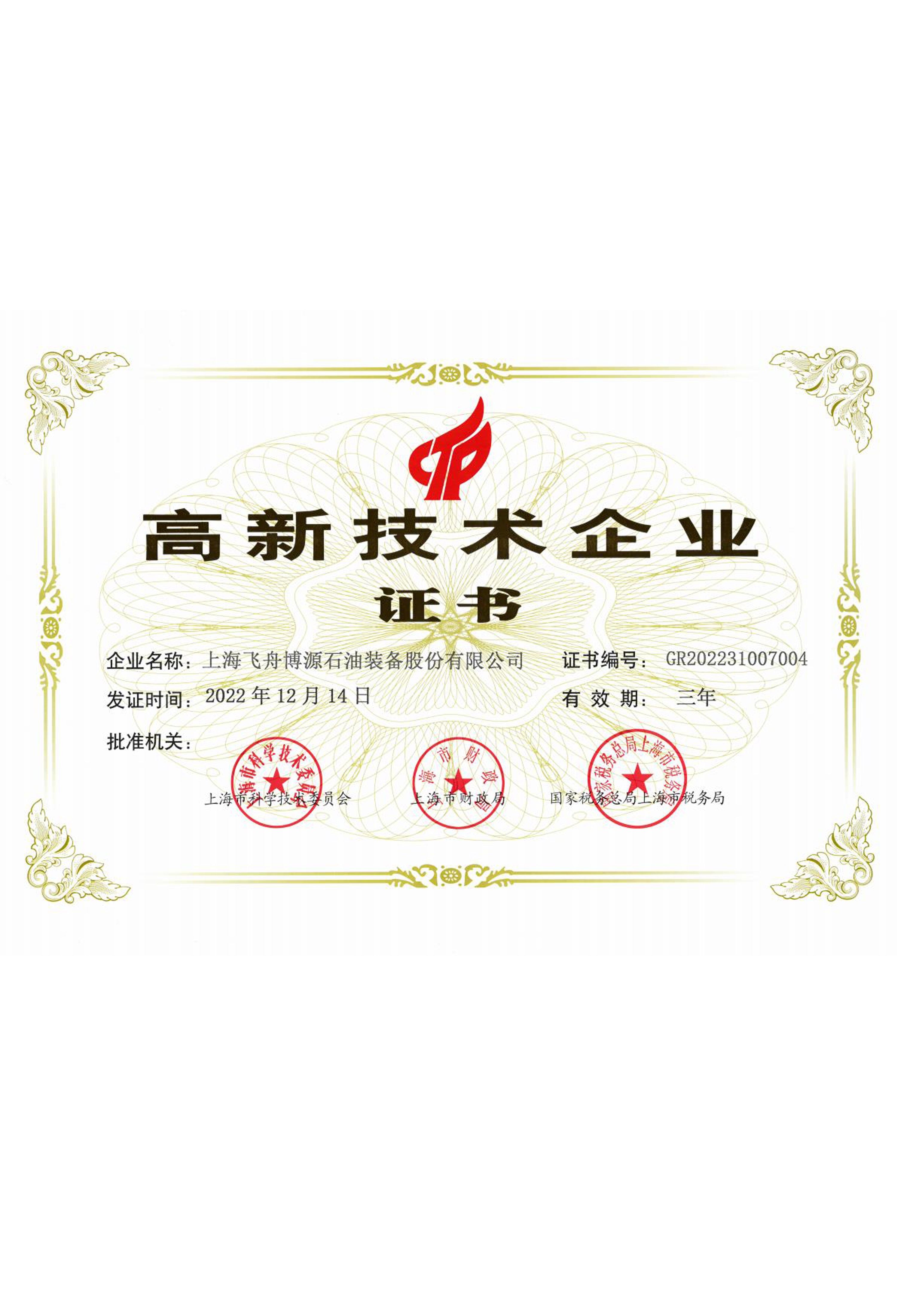 国家认定的高新技术企业资质,证明公司在技术创新方面的实力和研发投入。
