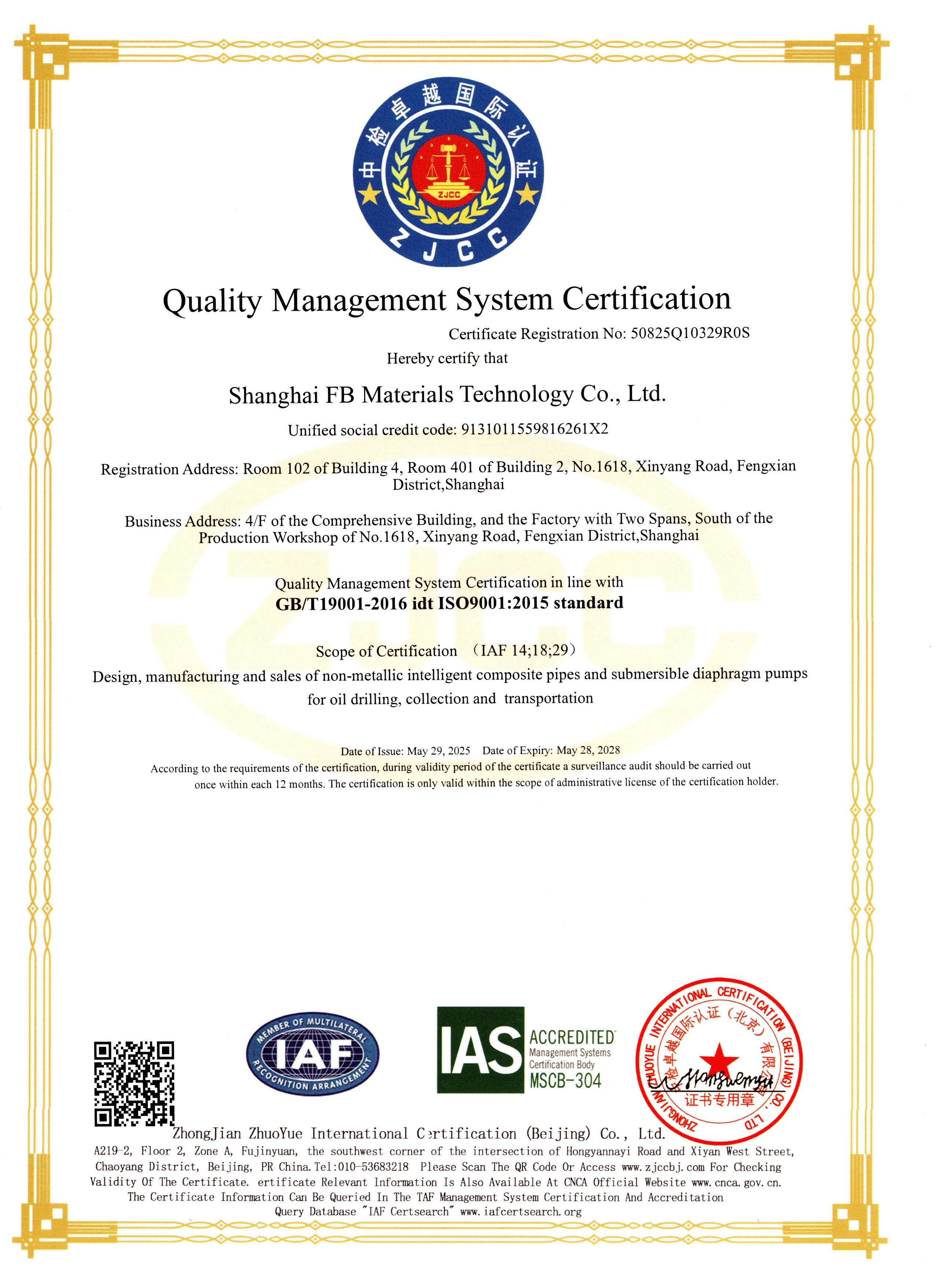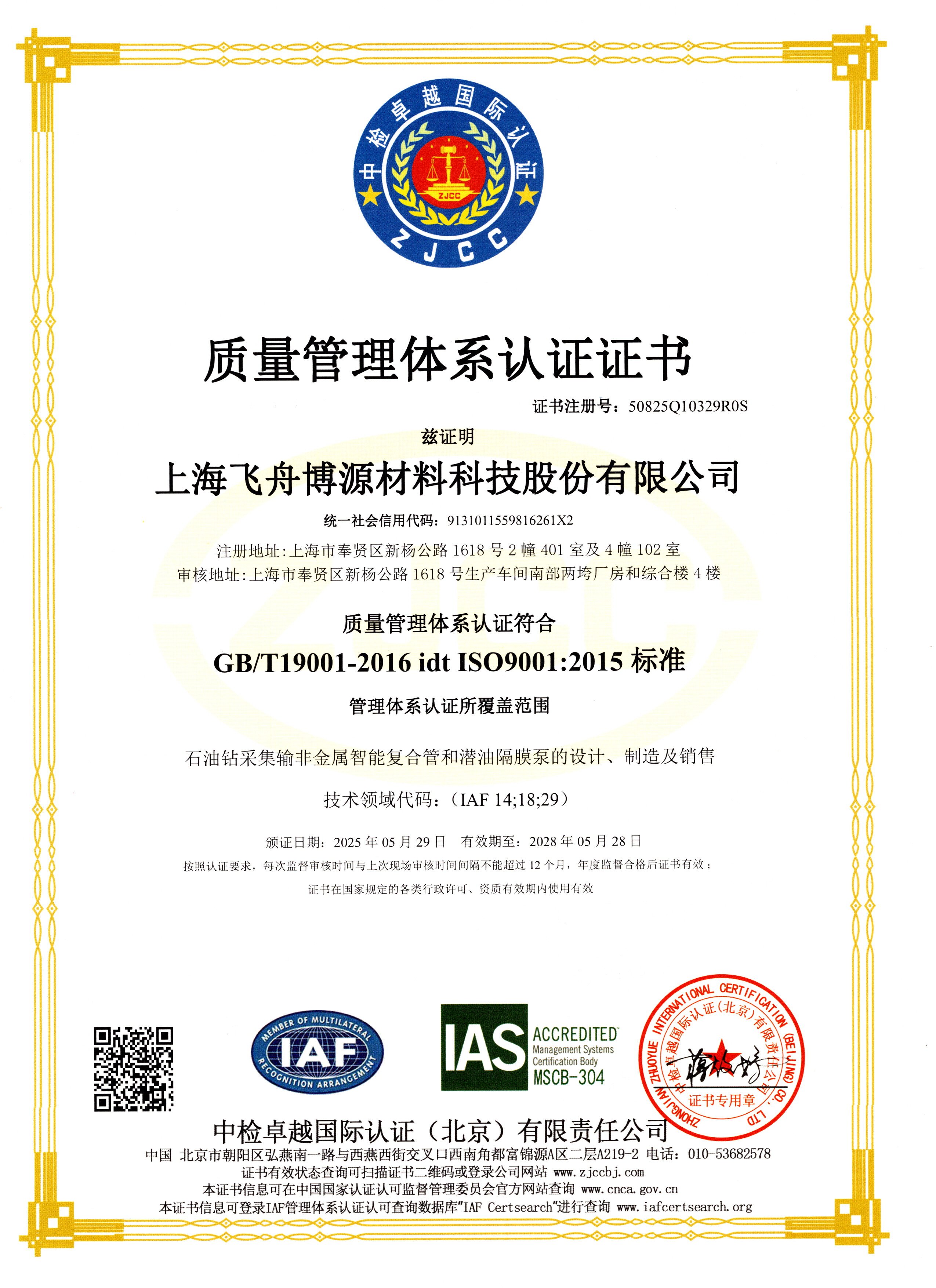 ISO 9001:2015质量管理体系认证,确保公司产品和服务的一致性和可靠性。